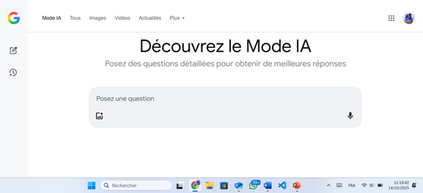 Le Mode IA permet une interaction conversationnelle. L'utilisateur peut poser des questions complémentaires pour approfondir sa recherche de manière naturelle. Cette approche permet d'explorer des sujets complexes, de comparer des options ou d'explorer un nouveau concept avec une fluidité inégalée.