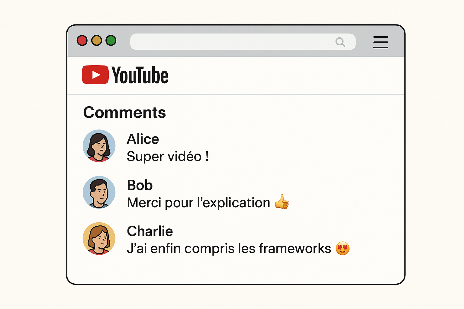 Imaginons par exemple que l’on souhaite afficher une liste de commentaires YouTube. Avec du HTML pur, il faudrait écrire manuellement le code pour chaque vidéo, puisque chaque vidéo a des commentaires différents. Ce serait ingérable.